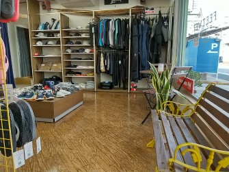 マリンウェアショップ フィート・ウェットフィート・ウェットはサンポート高松の西隣、浜ノ町にあります。マリンウェアを集めたマリンショップです
